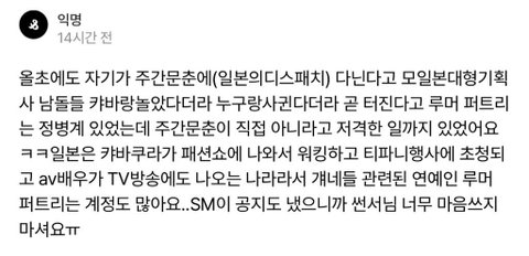 난 진짜 웃긴게 지네애들 얘기 할때는 가세혐 신발새끼고 한서희 약쟁이년이라고 그러면서 남얘기 할때는 저 말도 안되는 애들이 엄청난 공신력이 있는 소식통이야 ㅋㅋㅋㅋㅋㅋㅋㅋㅋㅋㅋㅋㅋㅋㅋㅋㅋㅋㅋㅋㅋ