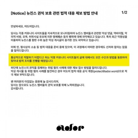 어도어 고소 공지 올라왔는데 장난없다