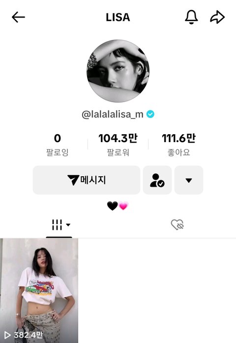리사 틱톡 2시간쯤 전에 공개한 것 같은데 벌써 백만 돌파임,, 로제도 조카 빨랐던 것 같은데