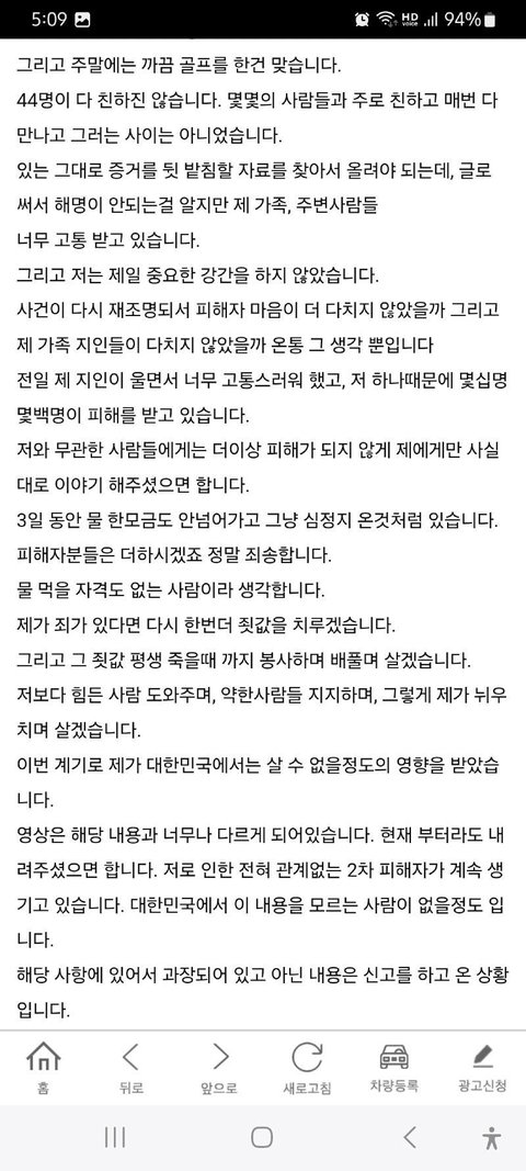 봉사하고 살겠다 직업도 없고 뭐하고 살지 모르겠다잖아요 저사람말고는 사과문 단 하나도 안올라왔음