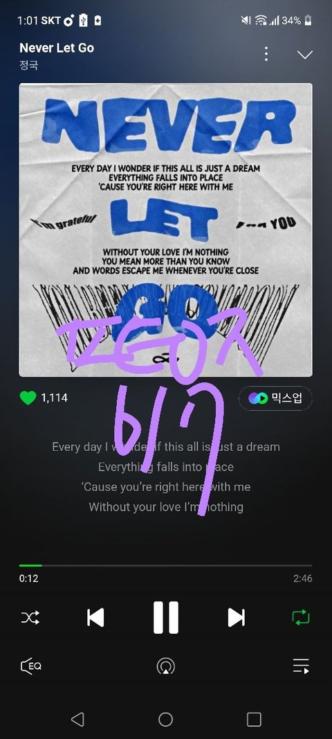 네버렛고고고고고고 귀에 계속 들림ㅋㅋㅋ 넘 좋다 정구가 고마워 글구 우리 어디안간다 못간다