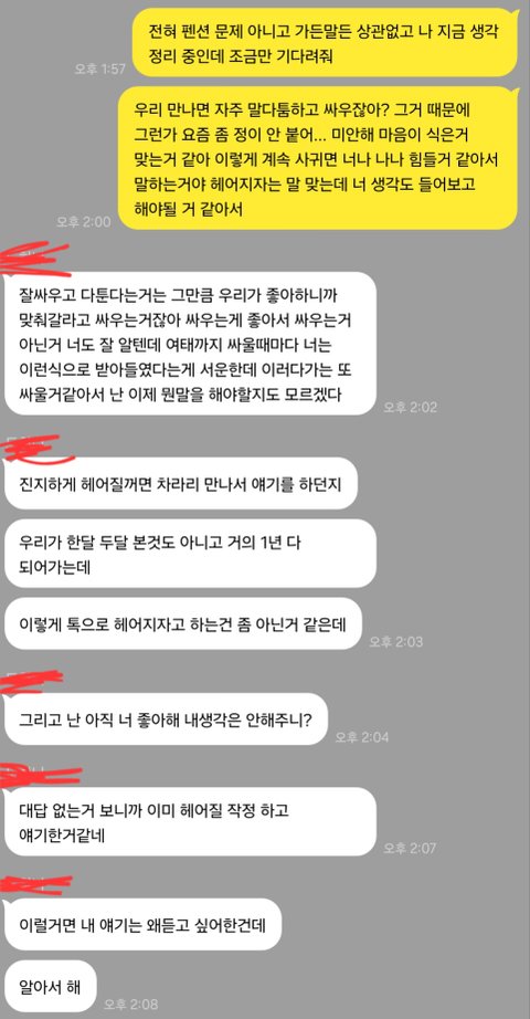 이렇게 나온거면 대답안하고 읽씹해도 되겠지...? 헤어진거 맞지?