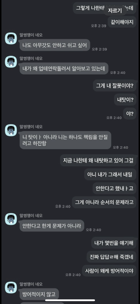 카톡으로 너무 유치하게 싸워서 보여주기 부끄럽지만 읽어보시고 고견 부탁드립니다.