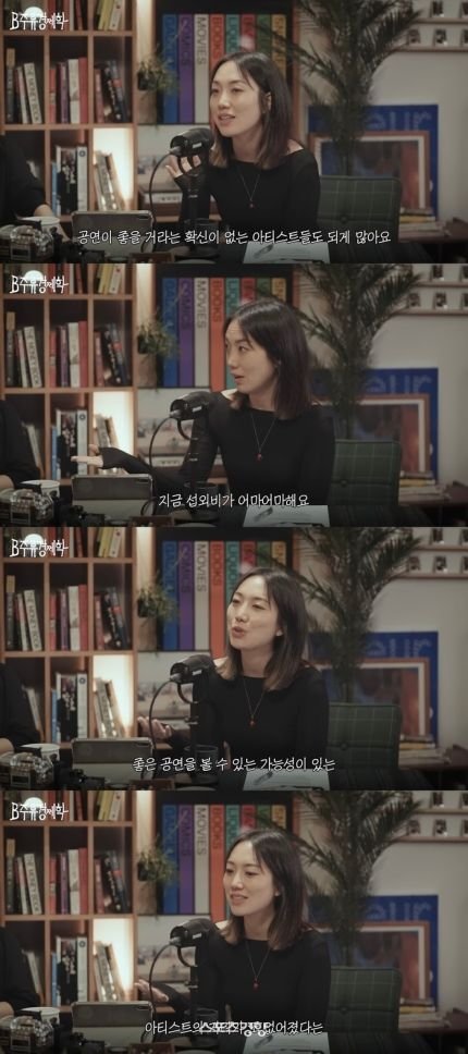 또한 “하지만 공연 기획을 하는 사람이면, 그래도 그게(실력) 증명된 사람을 올려야 되는 것이 개인적으로 맞다고 생각한다”며 “지금 섭외비가 어마어마하다. 그 돈으로 훨씬 더 가능성 있는 좋은 공연을 볼 수 있는 가능성이 있는 아티스트 자리가 또 없어졌다는 그런 안타까움이 있다”고 했다.