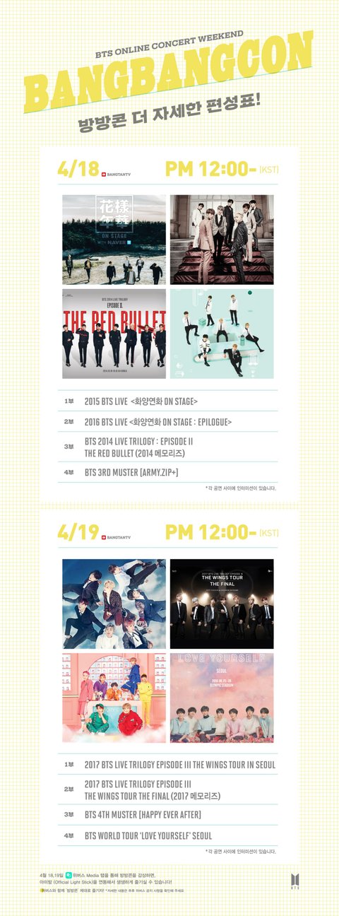 20년도 코로나 시국에 우울할때 처음 시작했던 방에서 즐기는 방탄소년단 콘서트 방방콘 이때 진짜 재밌었는데...어차피 밖에도 못 나가서 점심이랑 간식 음료 딱 준비해서 노트북이나 패드로 하루종일 봤었음 저땐 나도 늦덕이라 처음 보는 것도 많았고 진짜 콘서트 현장 중계하는 것 처럼 한순간도 놓치기 싫어서 초집중해서 봤었지 보고싶다 방탄