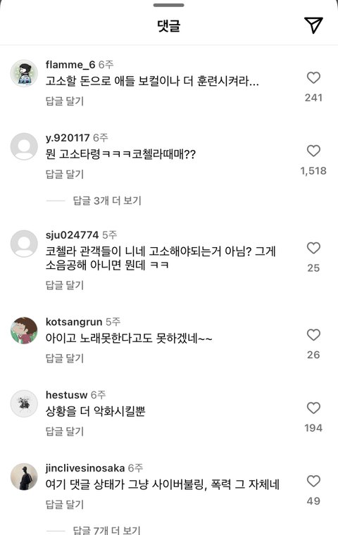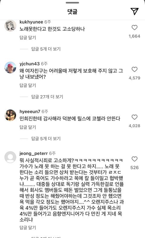 고소 당하는 애들이 단순히 노래 못한다고만 했겠냐? ㅋㅋㅋㅋㅋ 노래 못한다고만 했으면 안 쫄리겠지 ㅋㅋ
