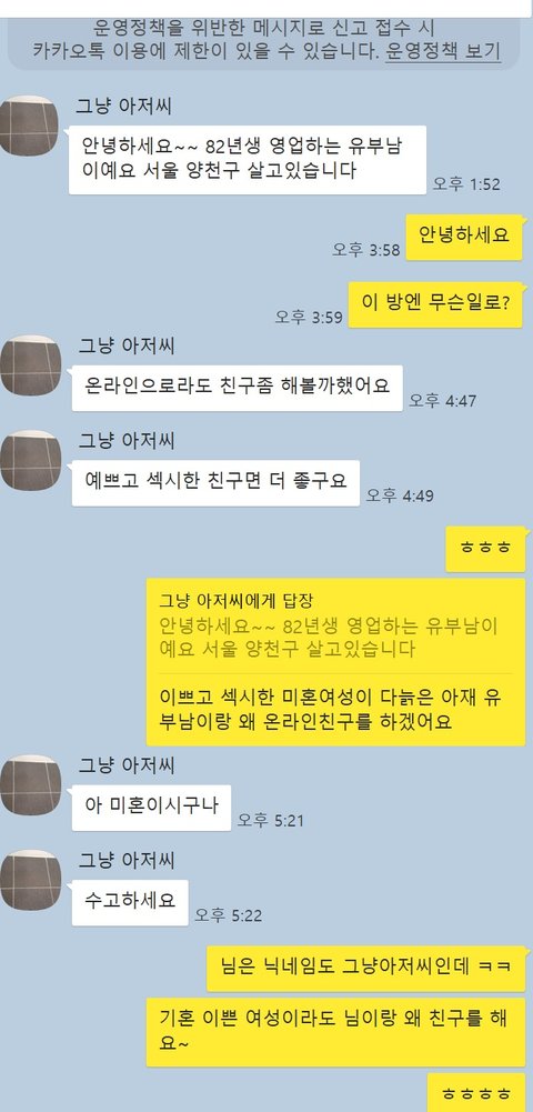 카카오톡 오픈채팅하는 한국 유부남 개저씨