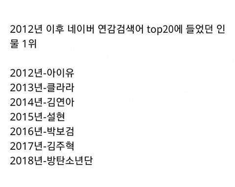 '연간'검색어임 한해 네이버에서 가장 많이 검색된 top20인데