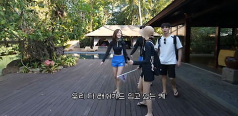 아무래도 가족여행이라 비키니는 민망해서 다들 래쉬가드 입었는데...