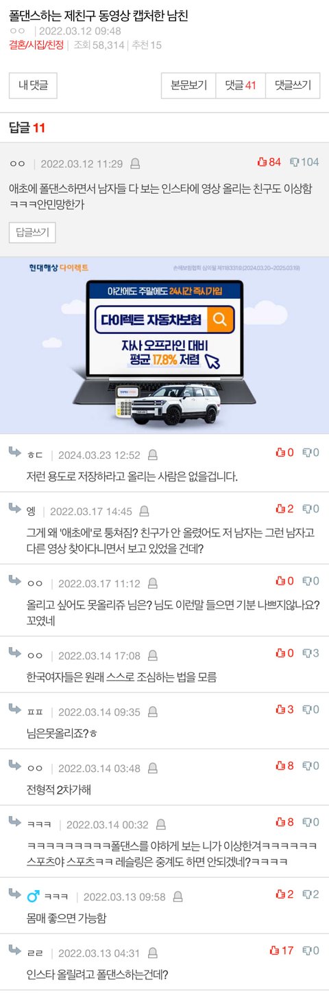 다른 여자 폴댄스 영상 남친이 저장하면 기분 나쁘지? 왜 나쁠까??????