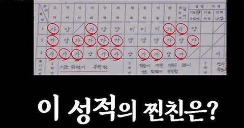 양과 가가 가득한 이 성적표....