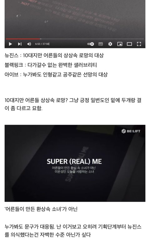 영상 10분쯤에 "스타일링 같은 경우에도 10대 소녀들이 굉장히 따라하고 싶게끔 하는것이 포인트였기 때문에 쿨공주, 레이스가 풍성하거나" 라고 말하면서 아일릿 무대의상이랑 화보 사진 지나가는데 소름돋음. 일본 메이드복이나 코스프레, 갸루도 아니고 그런걸 입고 싶어하는 한국 10~20대가 있음? 도데체 누가 저런 디렉팅을 한거임? 미취학 아동들 발레복 좋아하는 시기가 있는데 딱 그 느낌임.