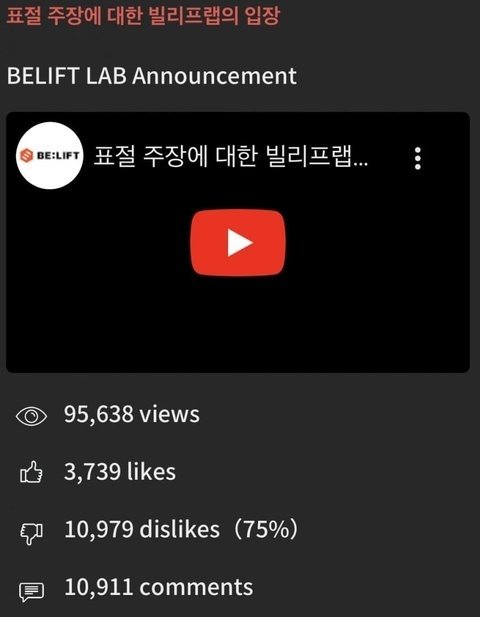 민씨나 뉴진스팬 아닌데도 자동적으로 싫어요에 손이 가던데? 양쪽 말은 다 들어봐야한다 주의라 일단 보긴했는데 개소리만 늘어놓더라 시간이 아깝다 팩트는 없고 뭔 감정호소만하고 있어 ㅉㅉㅉ