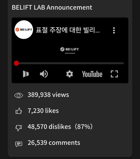 빌리프랩 실시간 싫어요 수뵜냐