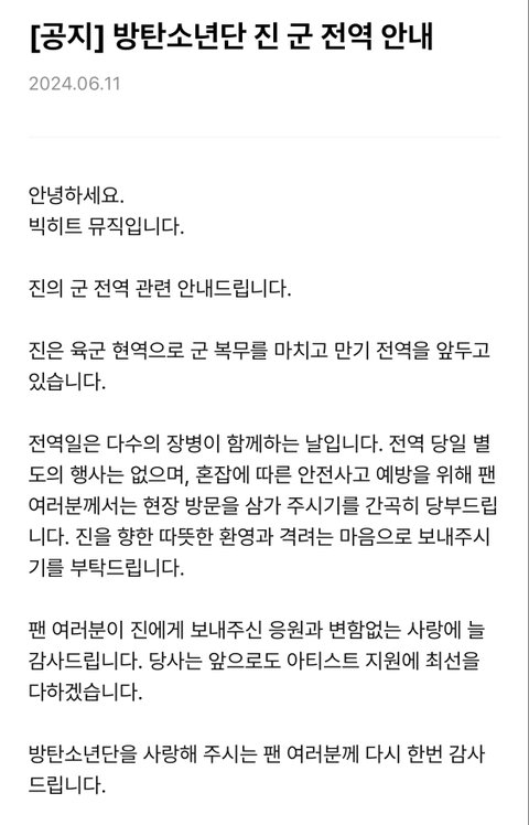 전역 공지가 뜨다니 개설레