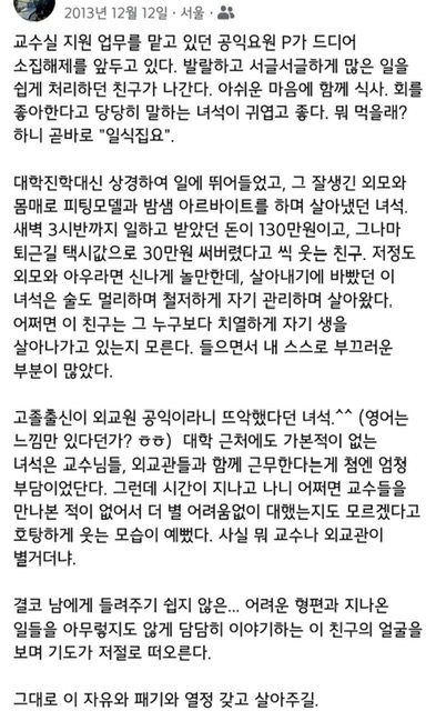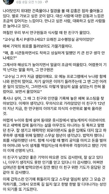 진짜 생판 남인데 눈물나네… 스무살의 순수한 열정과 선한 마음씨를 잃지않고 앞으로는 새로운 인생 행복하게 살았으면 좋겠네…