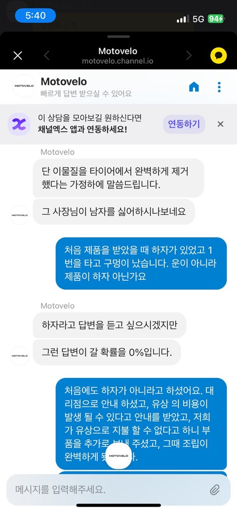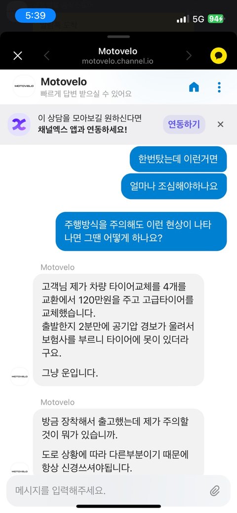 *도로 상황에 대해서까지는 당연히 도와줄수 없다는건 알지만남편한테 상담 후에 들어보니 대리점에서는 어떠한 물체에 의해 바퀴가 빵꾸가 난게 아니라남성의 탑승무게로 인한 원인이라고 하였고, 그래서 저희는 우선 비용을 처리하여 고쳤습니다.