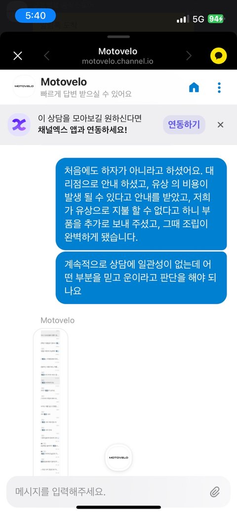 3. 5/22-27 대리점에서 고칠 시 유상비용 청구될 수 있다 안내받음-> 무게도 무겁고 작동되지 않는 전기자전거 가지고 대리점까지 갈 수 없으니 부품보내달라&구매 후 탑승조차 하지않았는데 유상처리는 아니라고본다-> 부품 보내줌
