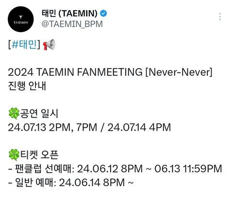 얼마 전에 샤이니 태민 생일 기념 솔로 팬미팅 공지 뜸