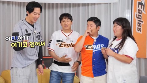 찐팬구역 촬영중 4회까지 5:4로 한화가 앞서는 중
