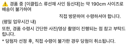 사이즈가 190cm라서 배송이 불가 -> 본인이 직접 와서 수령