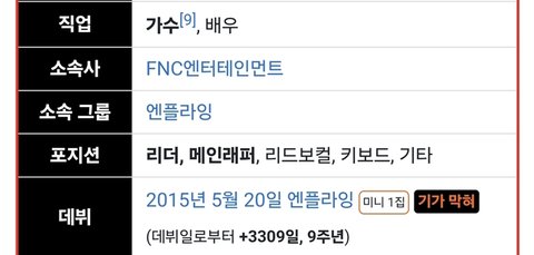 아이돌밴드 엔플라잉의 보컬 겸 래퍼 겸 리더 겸 피아노 겸 기타 겸 작곡가...