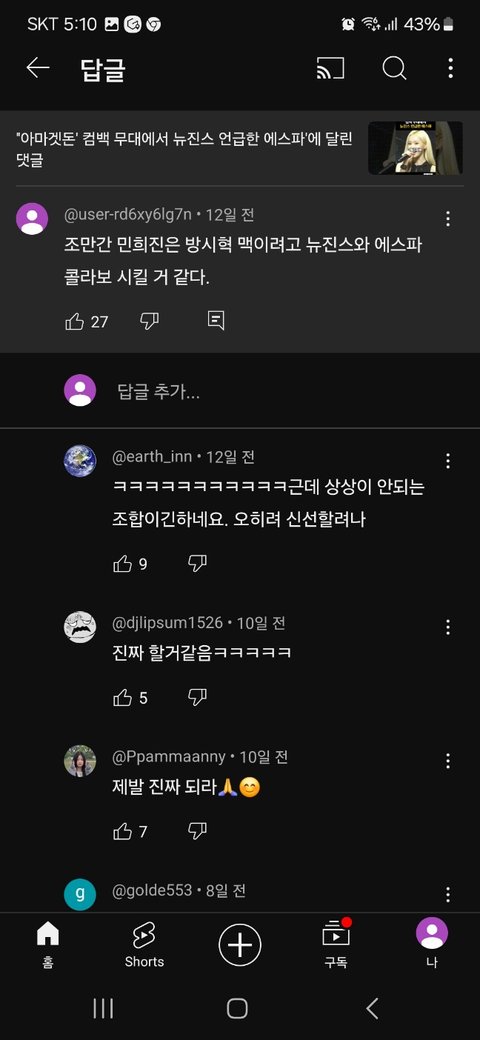 뉴진스+에스파 대통합 예언 댓글 (댓글 성지)