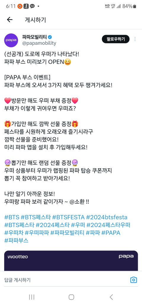 파파부스 이벤트 뜬거 봤어???우떠 이벤트 뜬거 보니까 부채 증정에랜덤 뽑기도 하고 깜짝선물 증정 이벤트 하네페스타 가는 아미~~ 부스 들러서 받아