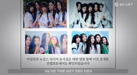 해당 영상 앞부분에는 “본 영상은 수익이 발생하지 않으며 사용된 인용 장면은 모두 민희진 대표 및 빌리프랩의 주장을 설명하기 위한 용도로만 사용됐습니다. 표절 주장에 대한 반박 근거 제시 및 입장 표명을 위해 불가피하게 타 아티스트 영상이 사용된 점 아티스트, 동료 크레에이터, 팬 여러분의 너른 양해 부탁드립니다”라는 안내 문구가 담겼다. A씨는 빌리프랩 측이 올린 영상 중 해당 장면을 지적한 것이다.