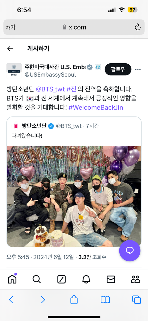 미국대사관에서 전역축하 트윗함
