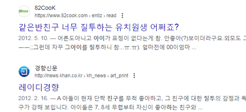 아이가 같은 유치원 다니는 친구에게 너무 심하게 질투를 해서 고민입니다.