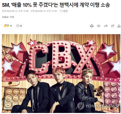 SM에서 첸백시한테 고소장 보낸거면