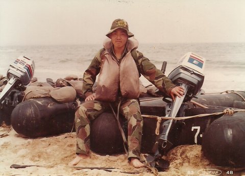 (사진4~7 설명) 본인(최대우) 군복무 사진. 1982년~1983년 포항1사단 제72해병대대(기습특공대대)에서 하사로 군복무할 때 촬영. 1: 당직하사 근무 중 촬영. 2: 하선망 훈련 중 촬영. 3: IBS 칵션훈련(고무보트 모터 조종훈련) 중 촬영. 4: 매년 3월초 미국 해병대와 합동으로 강원도에서 실시하는 팀스피릿트훈련에 참가하기 위해 출발 전에 훈련준비하면서 촬영.