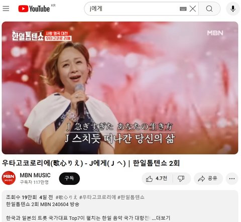 (사진8 설명) 우타고코로리에(歌心りえ) - J에게(Jへ)|한일톱텐쇼 2회 YouTube MBN 동영상 화면 캡춰