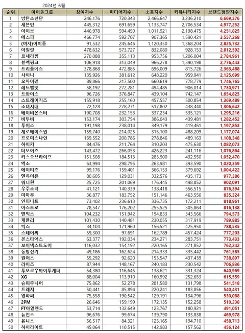 여돌 통틀어 제일핫하고 원탑인 뉴진스가 48위 ㅋㅋ에라이