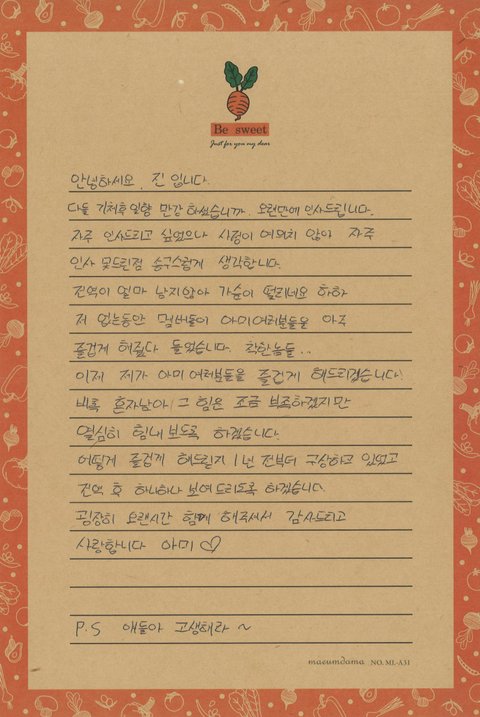 페스타 편지 지민 (알엠 진 슈가 제이홉 지민 뷔 정국)
