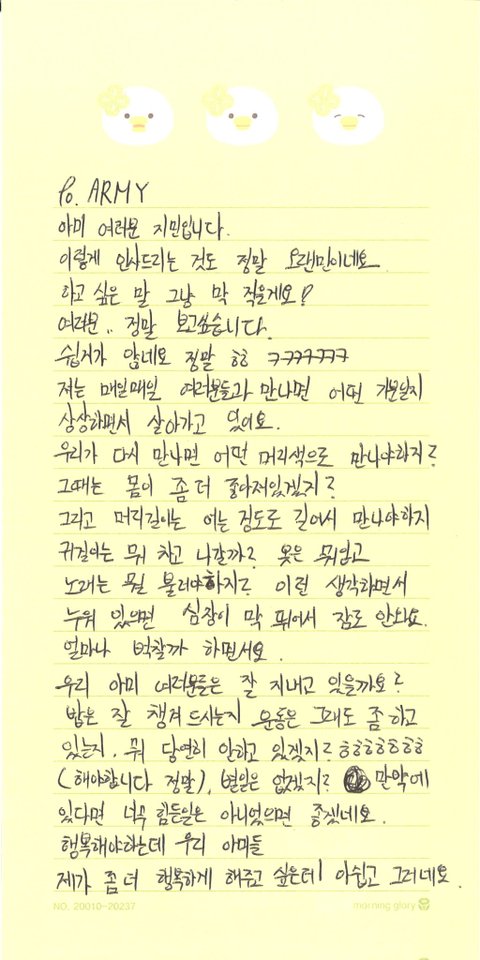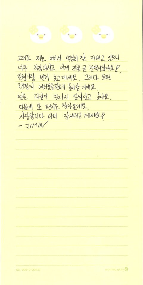 페스타 편지 지민 (알엠 진 슈가 제이홉 지민 뷔 정국)