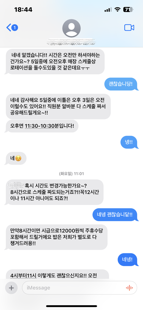 시간대도 갑자기 완전 정 반대 시간대로 변경 되냐고 해서 일단 빨리 일하려고 오케이 했습니다.