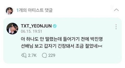 박진영 헌정무대 소개하는 연준 얼굴
