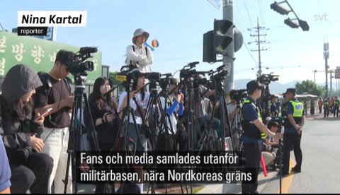 팬들과 미디어가 북한과의 국경에 인접한 군부대 앞에 모였습니다