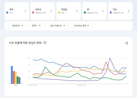 2024년 현재까지 한국 유튜브에서 가장 많이 검색된 K팝 남자아이돌 TOP10