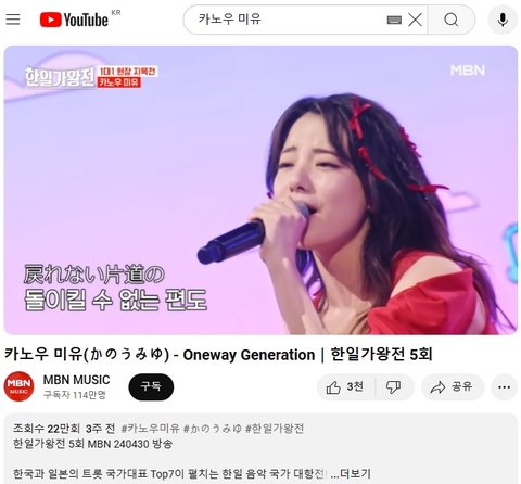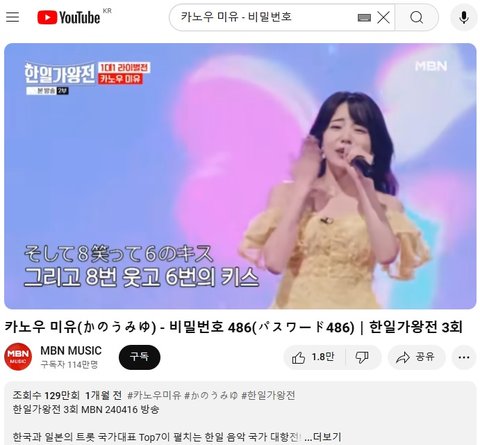 (사진3 설명) 카노우 미유(かのうみゆ) - 비밀번호 486(パスワード486)|한일가왕전 3회 계은숙 특집 YouTube MBN 동영상 화면 캡춰