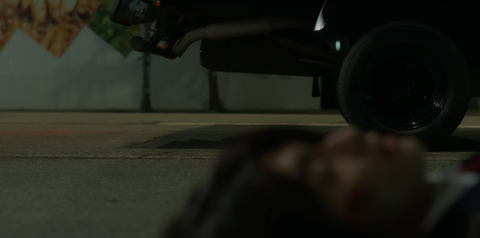 김득팔은 곧바로 차에 치이게 된다