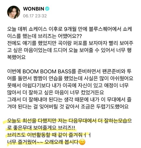 원빈이는 성격이 찐이야..위버스에 매번 이렇게 일기쓰고 감