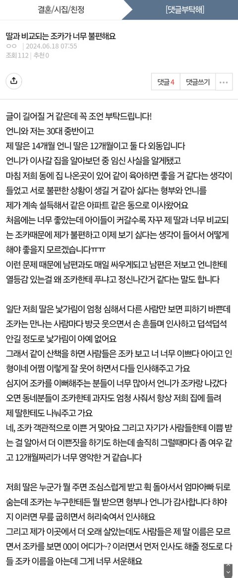 [원본지킴] 딸과 비교되는 조카가 불편해요