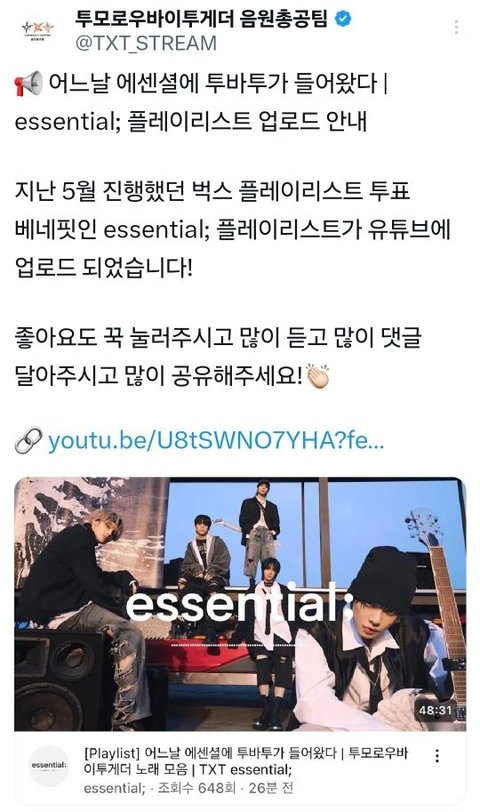 전에 벅스 투표 1등해서 여름노래 플리 만들어 준다는거 오늘 올라왔네 가서 즐감해 모아들아♡♡♡ https://youtu.be/U8tSWNO7YHA?si=TSM9d-J2TdLqK1Xd