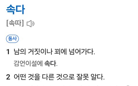 속은 = 속다 이런느낌 같기도 ㅋㅋㅋ