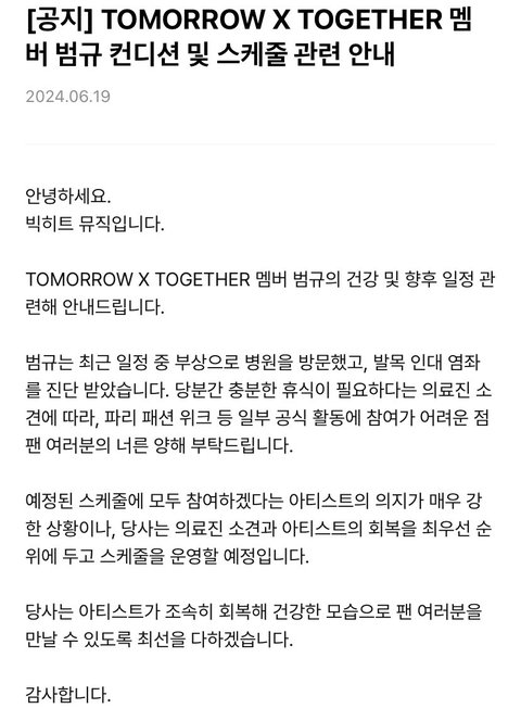 범규는 몸 안좋아서 불참이네 ㅜㅜㅜㅜㅜ 스케쥴너무심하긴한듯 언제 제대로 쉬냐....