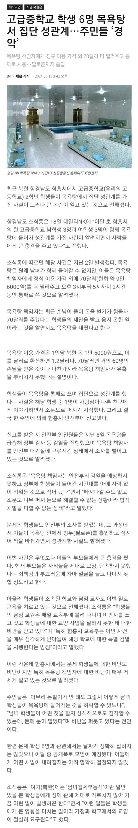 북한 기사가 왜 우리나라에...? 그것보다 우리나라 학생들도 따라할까봐 무섭네 더러운것들