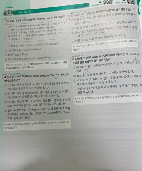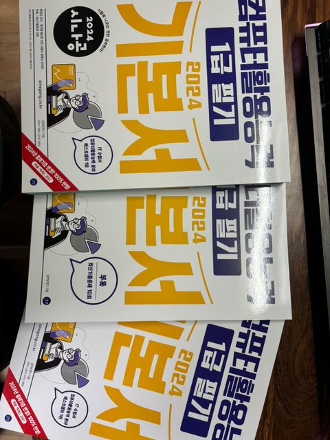 책은 총 3권으로 구성되어 있었습니다. 중간정도의 두께를 가진 책은 1과목 컴퓨터일반